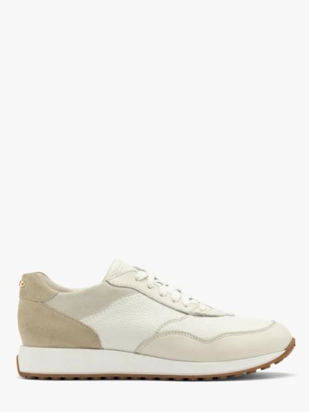 Biało-kremowe półbuty sportowe ze złotym logotypem na pięcie
