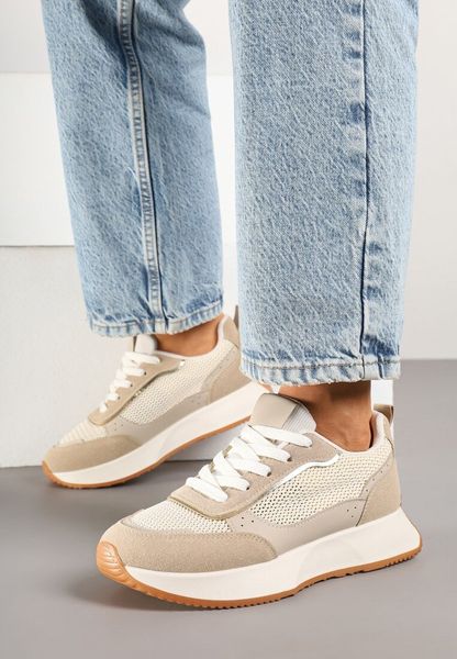 Ciemnobeżowe Sneakersy Ozdobione Geometrycznym Motywem Calgis