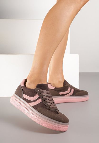 Brązowe Sneakersy Typu Kultowe Tenisówki na Niskiej Platformie Olritia
