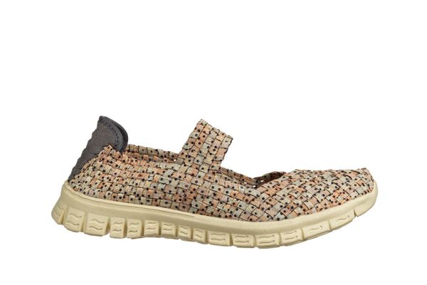 Półbuty sportowe marki Rock Spring w kolorze beżowym.Plecione cholewki z wyjątkowo elastycznych gumek idealnie dopasowują się do indywidualnego kształtu (tęgości) każdej stopy. Bardzo miękkie, piankowe wkładki oraz lekkie, antypoślizgowe podeszwy sprawiają, że buty są bardzo wygodne. Zapiętek wykonany z miłego w dotyku zamszu niweluje możliwość otarć pięty. Przez środek biegnie gruby pleciony pasek utrzymujący stopę […]