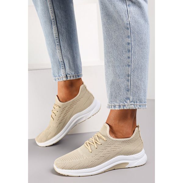 Beżowe Siateczkowe Buty Sportowe na Piankowej Podeszwie Linidas