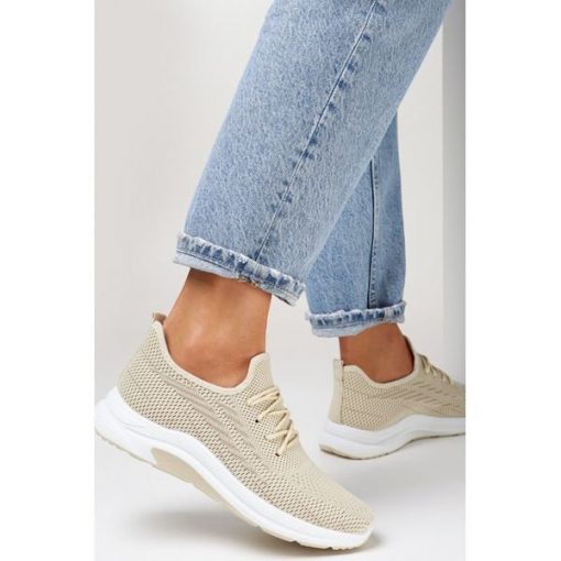 Beżowe Buty Sportowe z Siateczki Zdobione Wiązaniem Salmerus