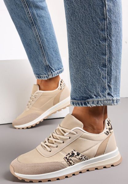 Biało-Ciemnobeżowe Sznurowane Sneakersy na Płaskiej Podeszwie z Wycięciami i Wstawkami Zaylynn