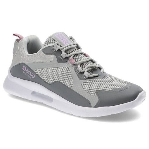 Szare sneakersy BIG STAR – LL274371 J.Szary to harmonijna kompozycja o przewiewnym kroju. Dostojna cholewka została opracowana ze skóry ekologicznej i materiału. Model z półprzezroczystą siateczką zażegna Twój problem nadmiernej potliwości stóp. Wnętrze oraz wkładka z materiału nie ścierają się ani nie barwią. Damskie sneakersy BIG STAR – LL274371 J.Szary