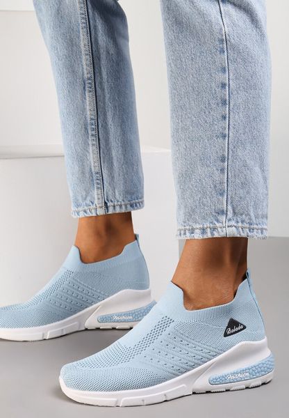 Jasnoniebieskie Buty Sportowe Ściągane Gumką Ozdobione Metaliczną Nicią Rianelle