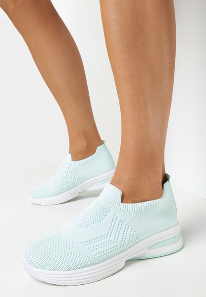 Zielone Płaskie Buty Sportowe z Elastyczną Cholewką przed Kostkę Atale