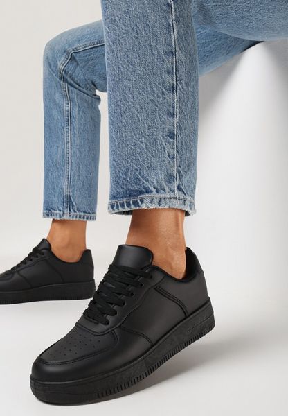 Czarne Sneakersy na Grubej Podeszwie z Ekoskóry z Przeszyciami Geriada