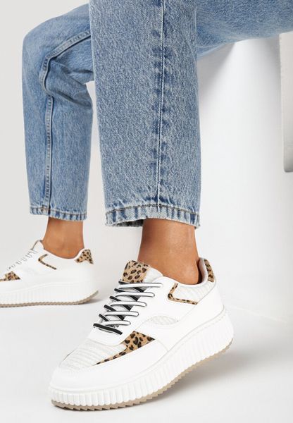 Białe Sneakersy na Grubej Podeszwie z Metalicznymi Wstawkami i Sznurowaniem Aelria