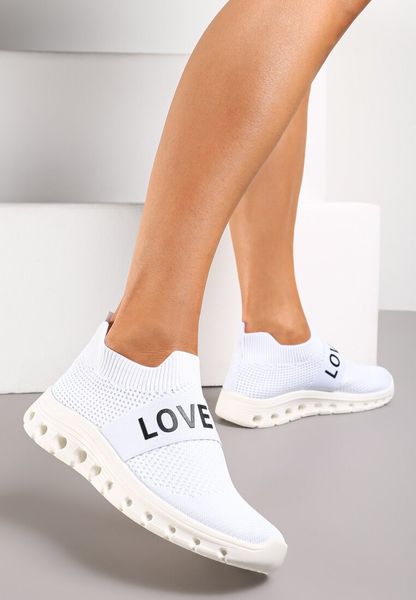 Białe Buty Sportowe z Napisem LOVE i Elastyczną Cholewką Alaissa