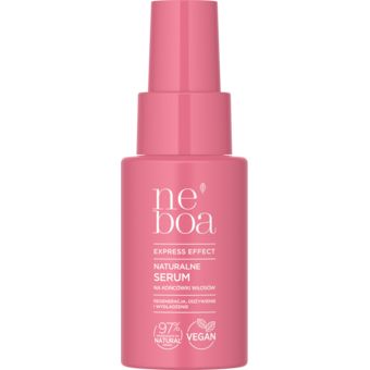 Serum na końcówki włosów Neboa Express Effect regeneruje, odżywia i wygładza.Serum tworzy na włosach nieobciążający film ochronny, który zabezpiecza końcówki przed uszkodzeniami. Dzięki zawartości masła shea, masła mango oraz oleju kukui, ekspresowo odżywia, nawilża i wygładza końcówki, a dzięki olejowi musztardowemu wzmacnia je i regeneruje.Produkt wegański. Zawiera 97% składników pochodzenia naturalnego.