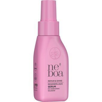 Ochronne serum na końcówki włosów Neboa Repair & Shine z silikonami.Serum silikonowe chroni i zabezpiecza końcówki włosów przed uszkodzeniami. Uelastycznia je i zapobiega rozdwajaniu. Dodatkowo niweluje puszenie oraz elektryzowanie się włosów.Produkt wegański.