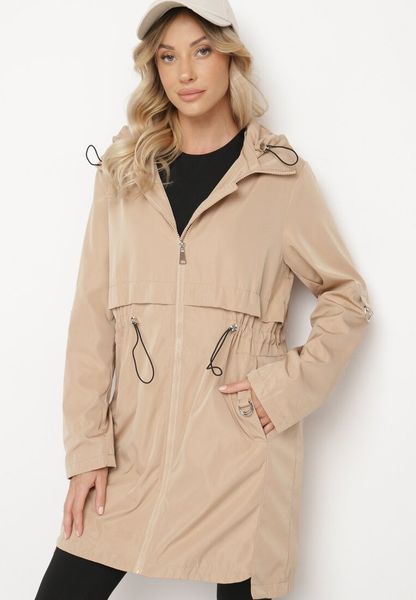 Beżowa Kurtka Parka Ściągana w Talii z Odpinanym Kapturem Milabra