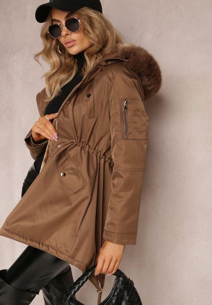 Brązowa Kurtka Parka z Kapturem i Ozdobnym Futerkiem Dioneta