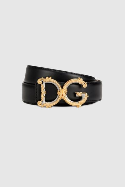 DOLCE & GABBANA Czarny pasek damski z barokową klamrą, Rozmiar 80