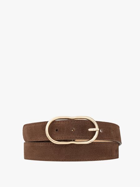 Jasnobrązowy welurowy pasek damski ze złotą klamrą