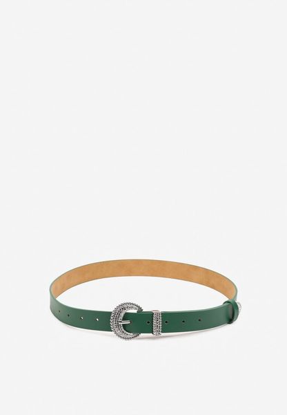 Zielony Casualowy Pasek Ozdobiony Metaliczną Klamrą z Cyrkoniami Nelasia