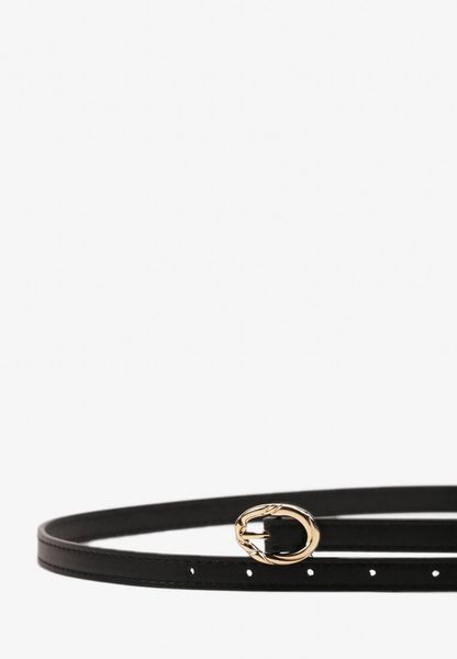 Czarny Pasek z Imitacji Skóry z Małą Ozdobną Sprzączką Aretta