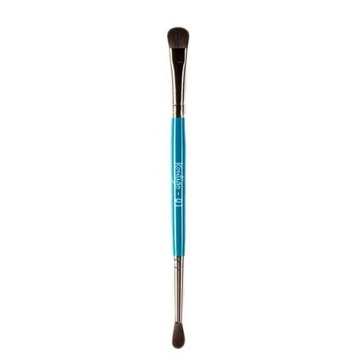 Pędzel podwójny, niezbędny do precyzyjnego nakładania cieni oraz konturowania w kącikach oka., Wykonany jest z syntetycznego włosia wysokiej jakości. Pędzel jest tworzony ręcznie. Drewniany trzonek i mosiężna skuwka są odporne na czynniki zewnętrzne.