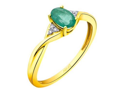 Pierścionek z żółtego złota z diamentami i szmaragdem – próba 585