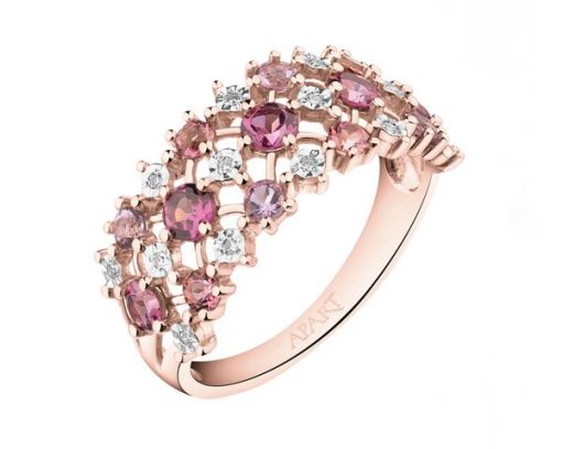 Pierścionek z różowego złota z diamentami i kamieniami ozdobnymi – próba 585 – 220.388. Różowe złoto rodowane