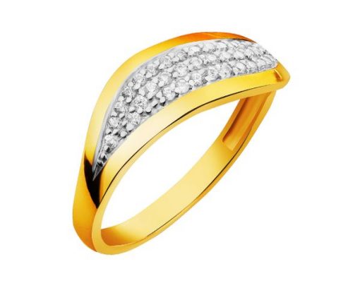 Złoty pierścionek z cyrkoniami – P-969.01. Żółte złoto rodowane