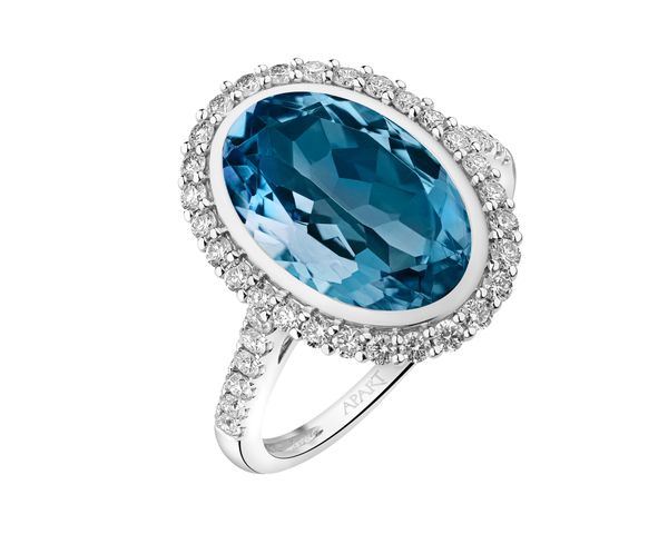 Pierścionek z białego złota z brylantami i topazem London Blue – próba 585
