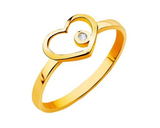 Złoty pierścionek z cyrkonią – serce – P-985.01. Żółte złoto