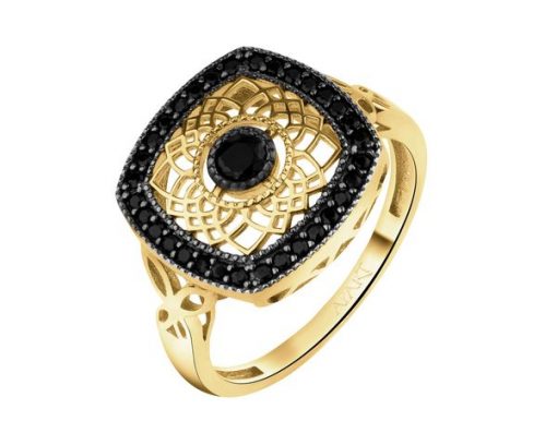 Złoty pierścionek z cyrkoniami – AP539-8875. Żółte złoto, czarny rod