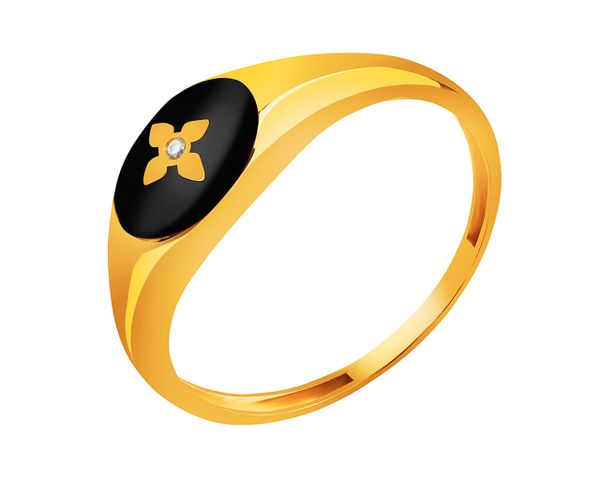 Złoty pierścionek z cyrkonią i emalią – sygnet
