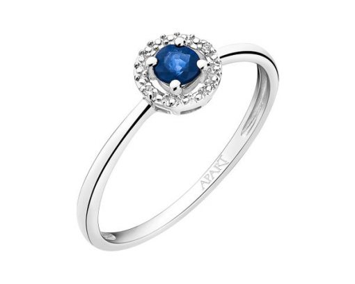 Pierścionek z białego złota z diamentami i szafirem – próba 375