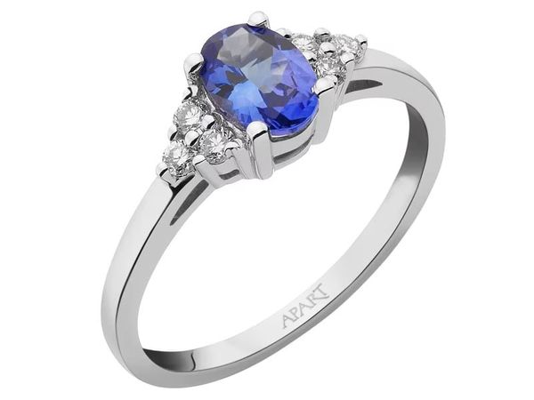 Pierścionek z białego złota z brylantami i tanzanitem – próba 585 – 866. Białe złoto rodowane