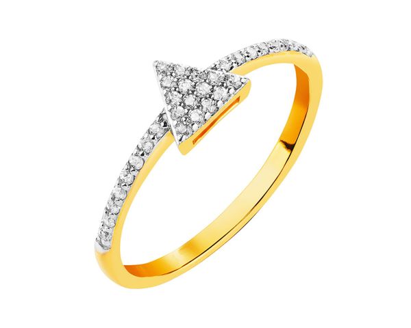 Złoty pierścionek z cyrkoniami – trójkąt – P-1002.01. Żółte złoto rodowane