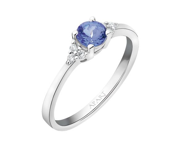 Pierścionek z białego złota z brylantami i tanzanitem – próba 585