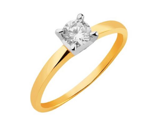 Złoty pierścionek z cyrkonią – P-482.01. Żółte złoto rodowane