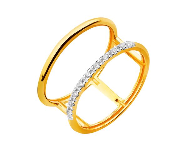Złoty pierścionek z cyrkoniami – P-965.02. Żółte złoto rodowane