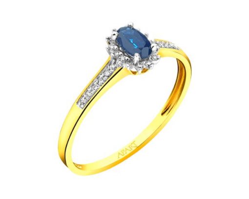 Pierścionek z żółtego złota z diamentami i szafirem – próba 585
