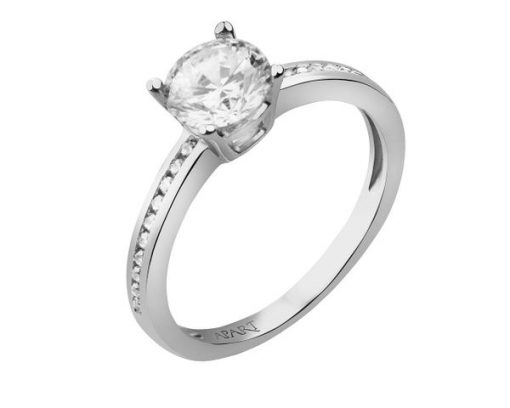 Złoty pierścionek z cyrkoniami – P-1029.04. Białe złoto rodowane
