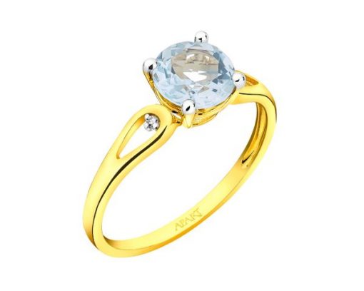 Pierścionek z żółtego złota z diamentami i topazem Sky Blue – próba 375 – 109.988. Żółte złoto rodowane