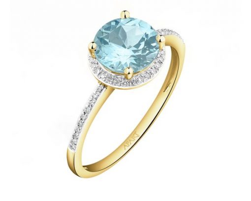 Pierścionek z żółtego złota z diamentami i topazem Sky Blue – próba 585