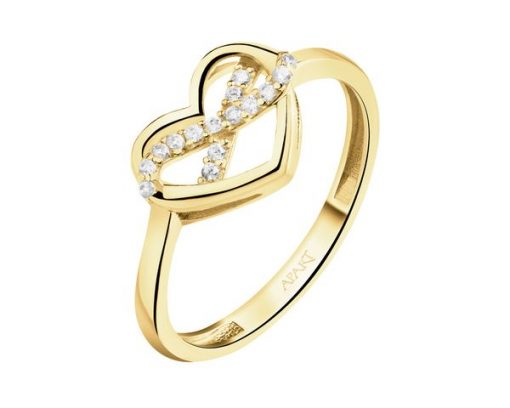 Złoty pierścionek z cyrkoniami – serce, nieskończoność – AP541-2793. Żółte złoto