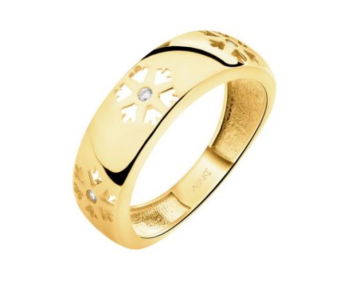 Złoty pierścionek z cyrkoniami – śnieżynki – AP540-7979. Żółte złoto