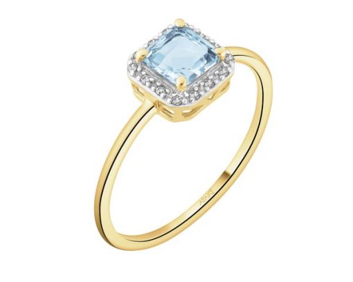 Pierścionek z żółtego złota z diamentami i topazem Sky Blue – próba 585 – 203.239. Żółte złoto rodowane