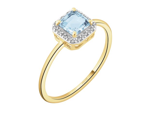 Pierścionek z żółtego złota z diamentami i topazem Sky Blue – próba 585