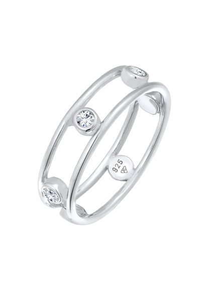 Elli Podwójne damskie eleganckie z kryształami w srebrze próby 925 sterling silver Pierścionki 1 ct Damski