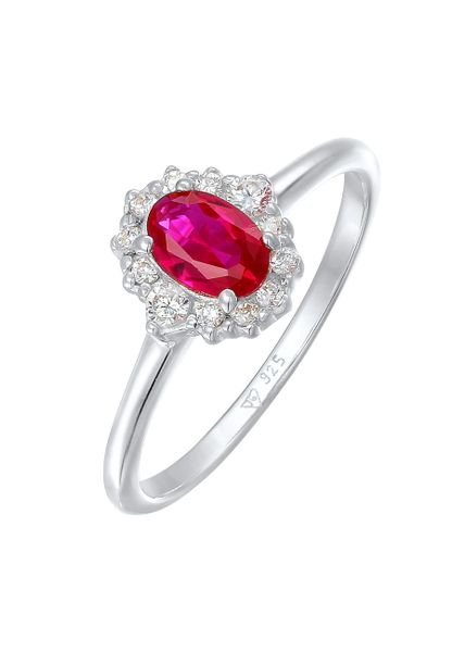 Elli Damski koktajlowy owalny Elegancki z syntetycznym Rubinemem i cyrkonią w srebrze 925 Sterling Silver Pierścionki 1 ct