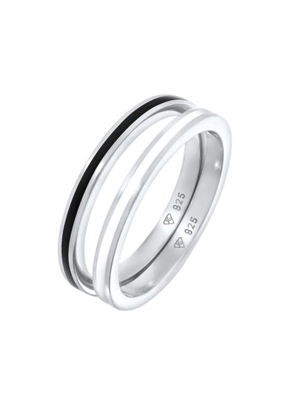Elli Damski Zestaw pierścionków Podstawowy Czarny z emalią w srebrze 925 Sterling Silver Pierścionki 1 ct