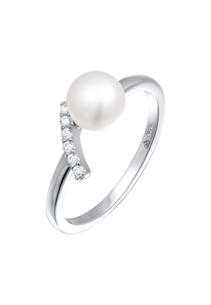 Nenalina Damski elegancki pierścionek z perłą hodowlaną słodkowodną i cyrkoniami ze srebra próby 925 Sterling Silver Pierścionki 1 ct