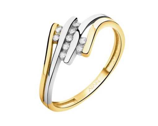 Złoty pierścionek z cyrkoniami – AP541-8718. Żółte złoto rodowane