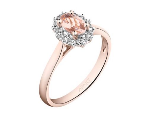 Pierścionek z różowego złota z diamentami i morganitem – próba 585 – 110.554. Różowe złoto rodowane