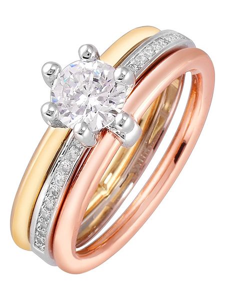 – materiał: rod- powłoka 1: w kolorze złota- powłoka 2: w kolorze różowego złota- rodzaj kamienia: kryształ- kolor kamienia: białyWskazówka: Zdjęcie produktu w powiększeniu.